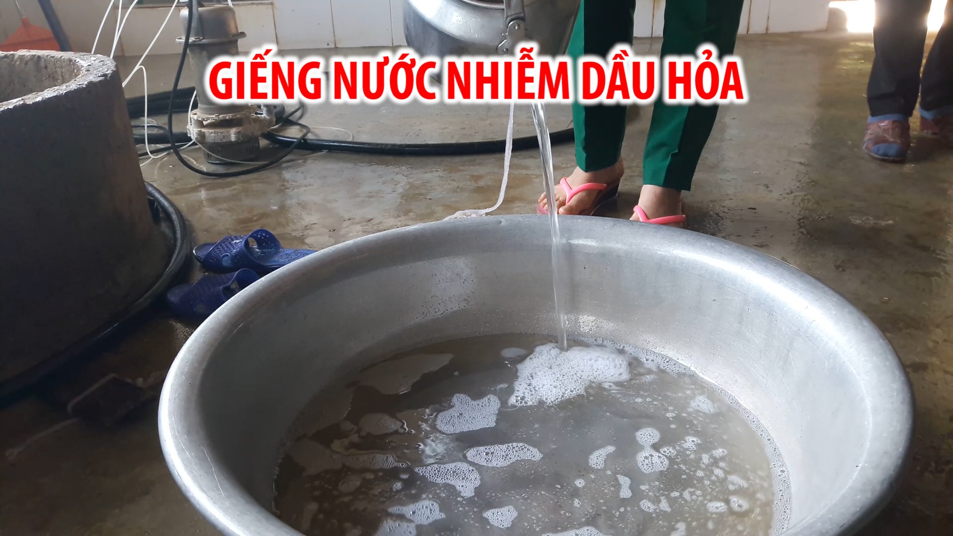 Hình ảnh giếng bị nhiễm xăng với lớp váng dày đặc