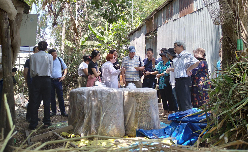 Đoàn chuyên gia Liên minh Toàn cầu về sức khỏe và ô nhiễm (GAHP), Hội Bảo vệ Tài nguyên và Môi trường Việt Nam (VACNE) đã khảo sát các mô hình tận dụng rơm rạ của nông dân ở huyện Châu Thành (tỉnh An Giang).