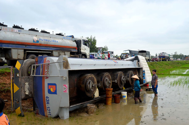 – Xăng dầu trong bồn chứa xe xitec tiếp tục chảy ra từ họng xuất trong quá trình diễn ra đám cháy.
